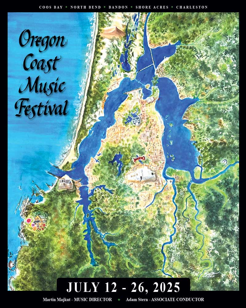 The Coos Bay estuary creates a community through all its offerings: abundant beauty, acting as a bridge between the sea and the land, home to all sorts of critters and surprising us every day with fresh views and rejuvenation. Those of us who live here are all linked in some way through the estuary’s bountiful properties, just as music links us all, with its enrichment of the human spirit.